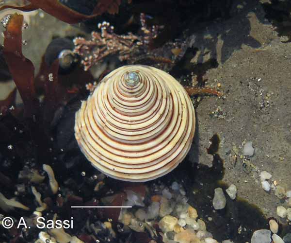 Young shells can easily be confused with Margarites pupillus, but this shell does not have an open umbilicus like the margarite. When the surface of the shell